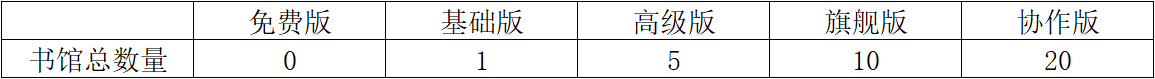 注意:不同账号会员版本的可创建书馆总数量不同,具体看下表: