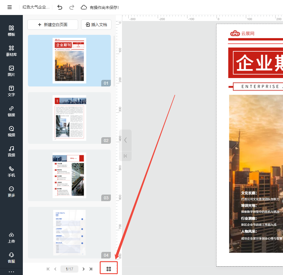 如果在编辑电子画册的时候需要同时移动较多页面时,可以使用批量管理页面的功能。