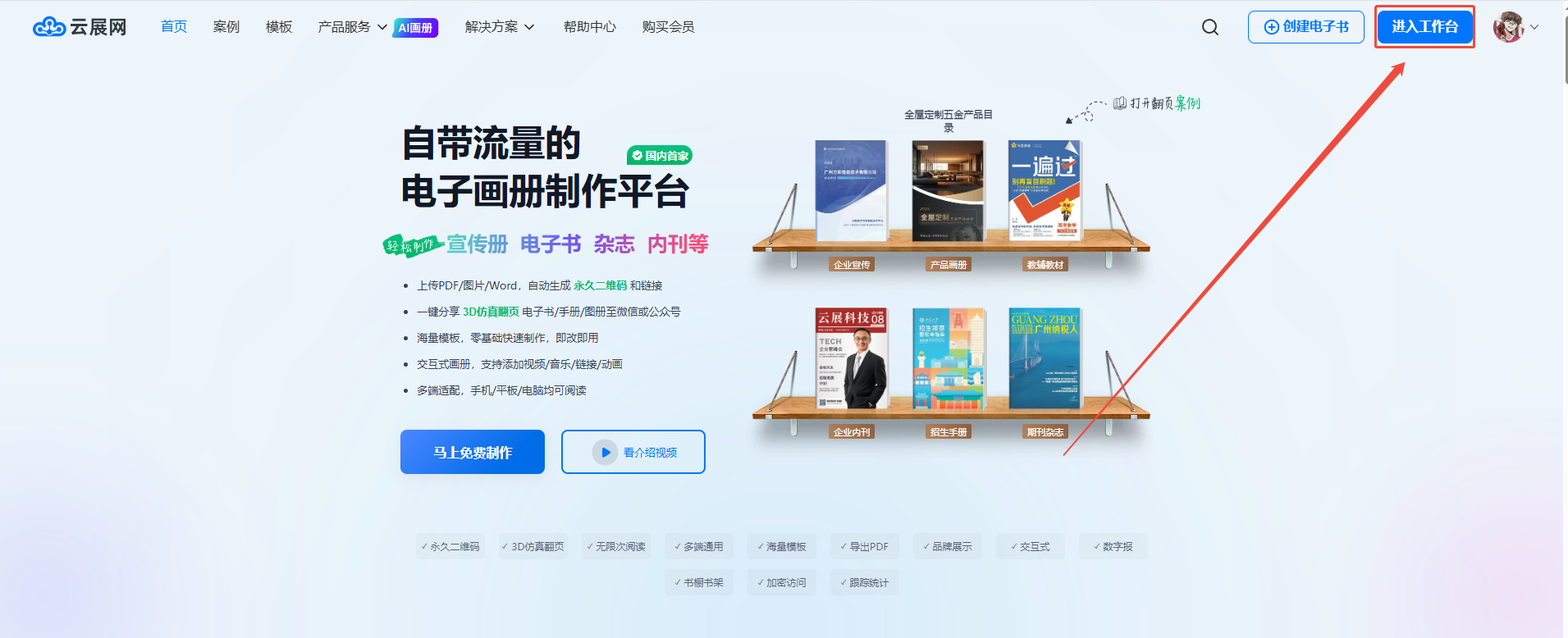 点击右上角【进入工作台】进入界面。
