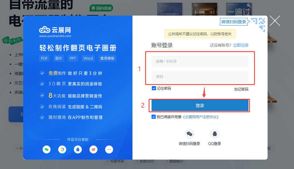 1、电脑上云展网网页激活