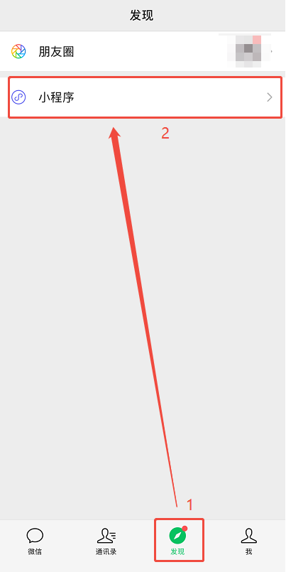 (1)微信上点击【发现】,然后点击小程序。