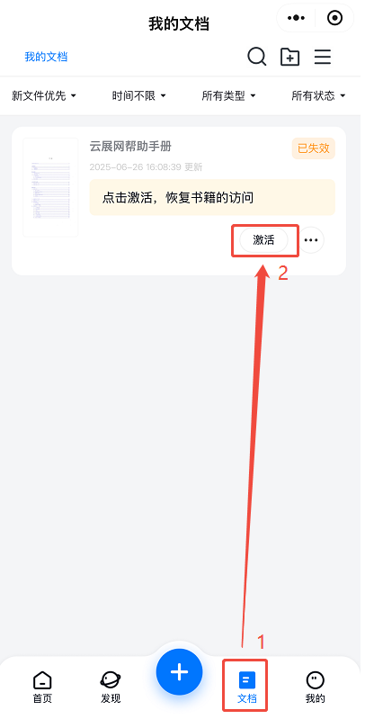 (3)点击【文档】,找到书籍,点击【激活】即可,如果有文件夹就双击打开找到书籍。