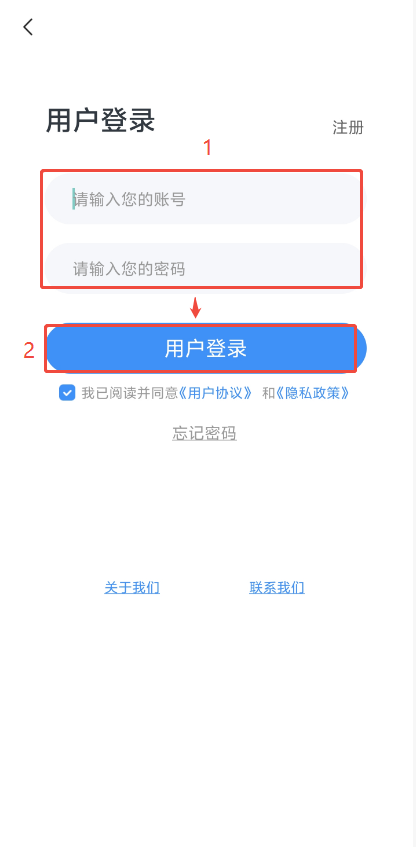 (2)打开云展网APP,点击【我的】,然后点击【登录】,输入账号和密码后点击【用户登录】。