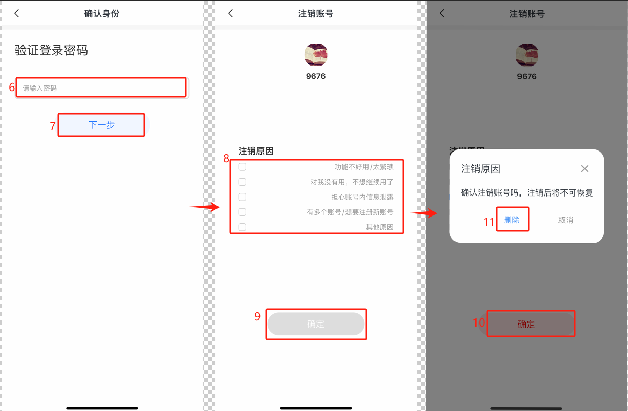 - 注销后,账号下的所有数据、记录等将无法访问和找回