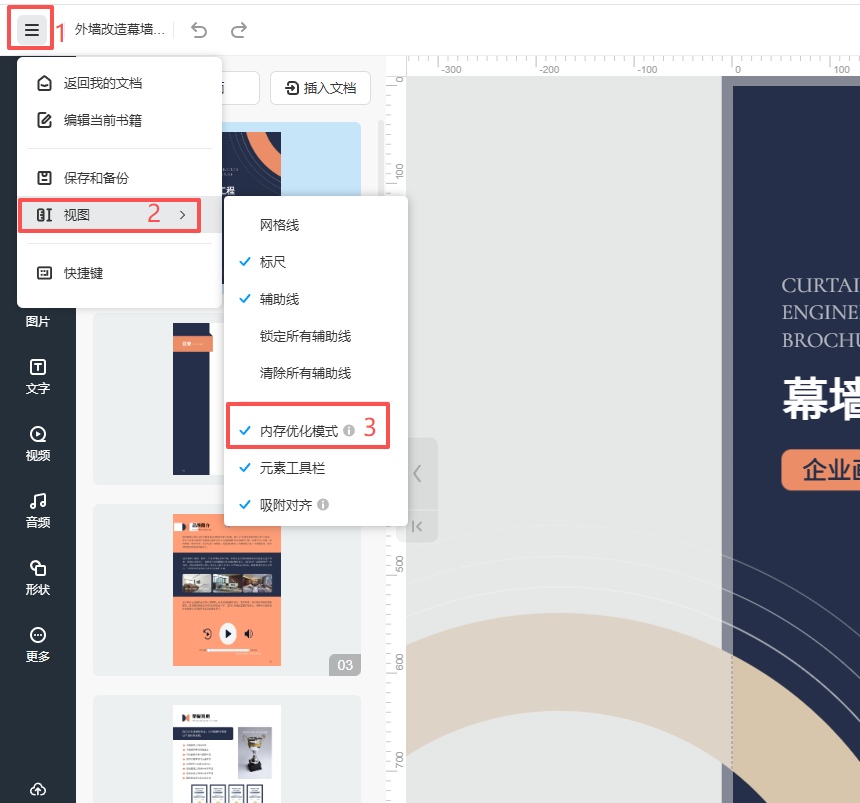 开启内存优化模式,编辑器会调整部分菜单区域的显示特效,降低内存开销。