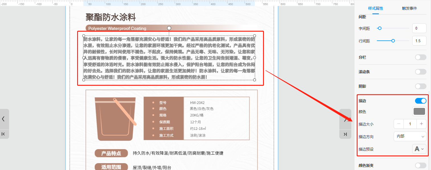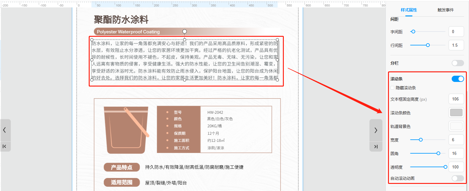 当文字段落太长,又不想它占据页面太多面积时,可以选中文本框并打开【滚动条】,这样可以缩小文本框的面积,读者可以滑动观看后面的内容。