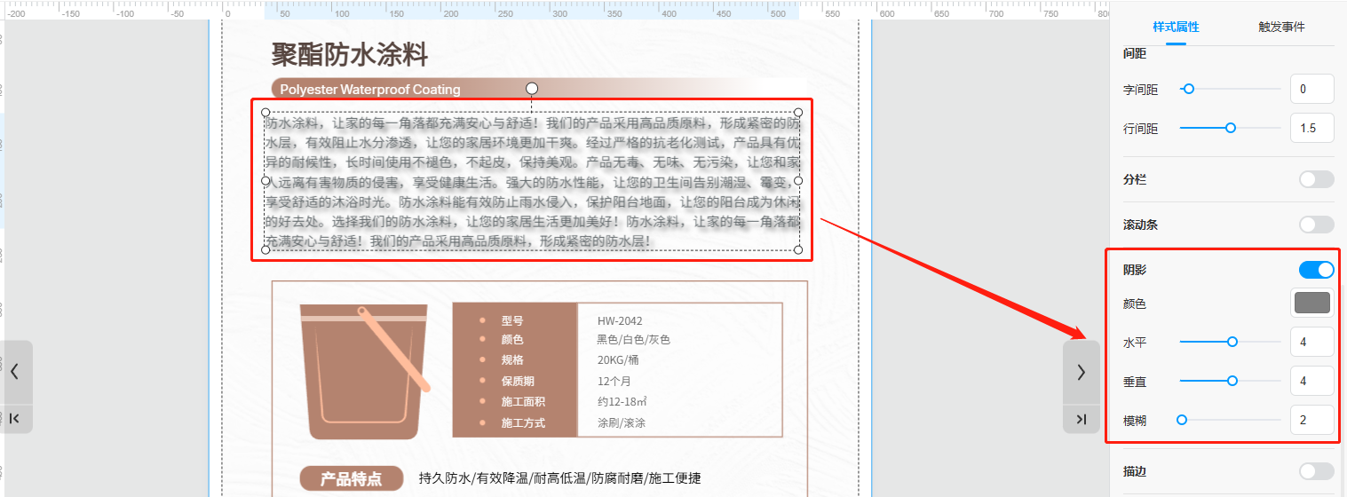 选中你所需要修改的文本框,打开【阴影】,可以给文字段落增加阴影效果。