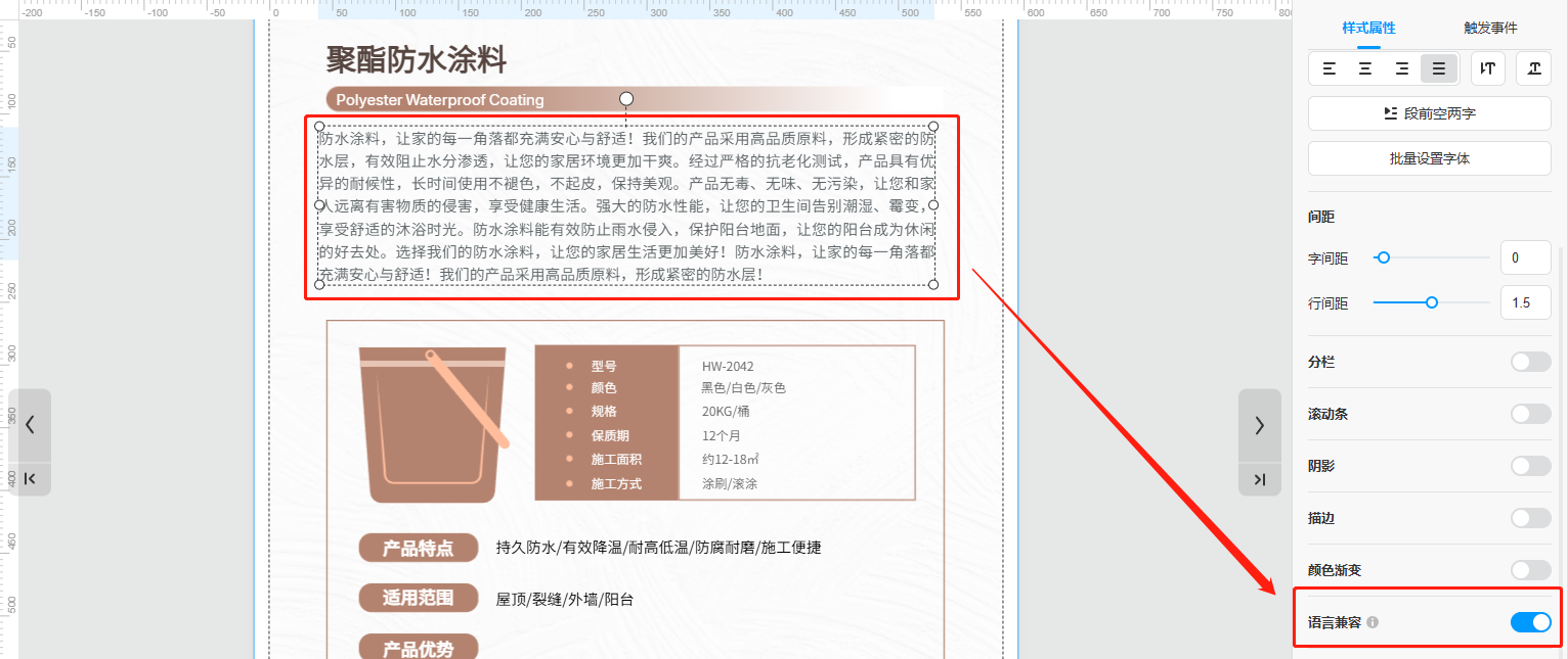 如果文本框中有文字或者标点符号显示异常,可以选中文本框打开【语言兼容】,就会恢复正常。