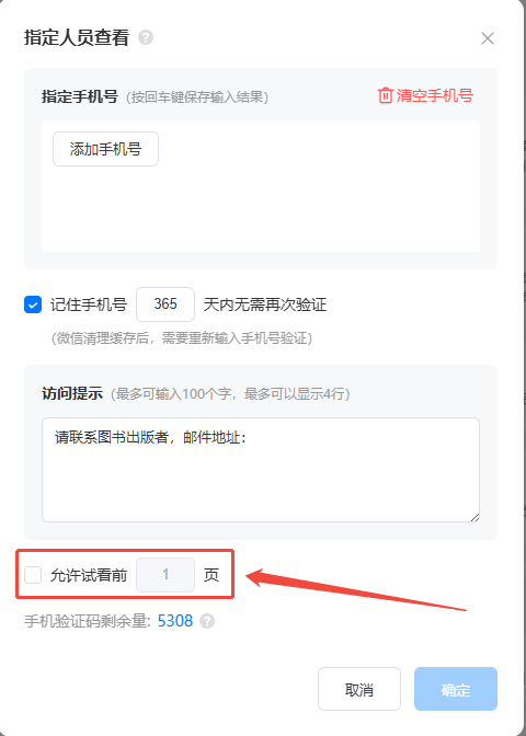 如果你想允许读者看几页之后再要求输入手机号验证,可设置一下允许查看几页。