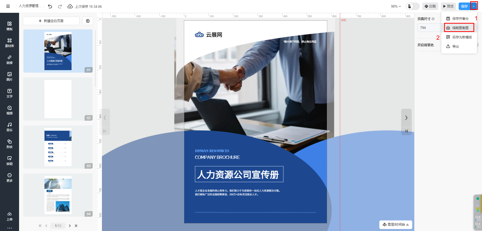 点击保存右侧下拉键,选择【缩略图截图】。