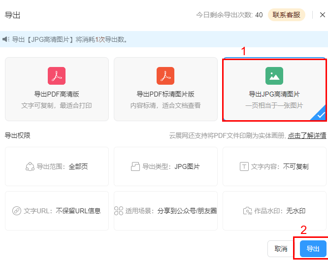 温馨提示:各版本支持导出的PDF次数和JPG次数不同,具体可看下表: