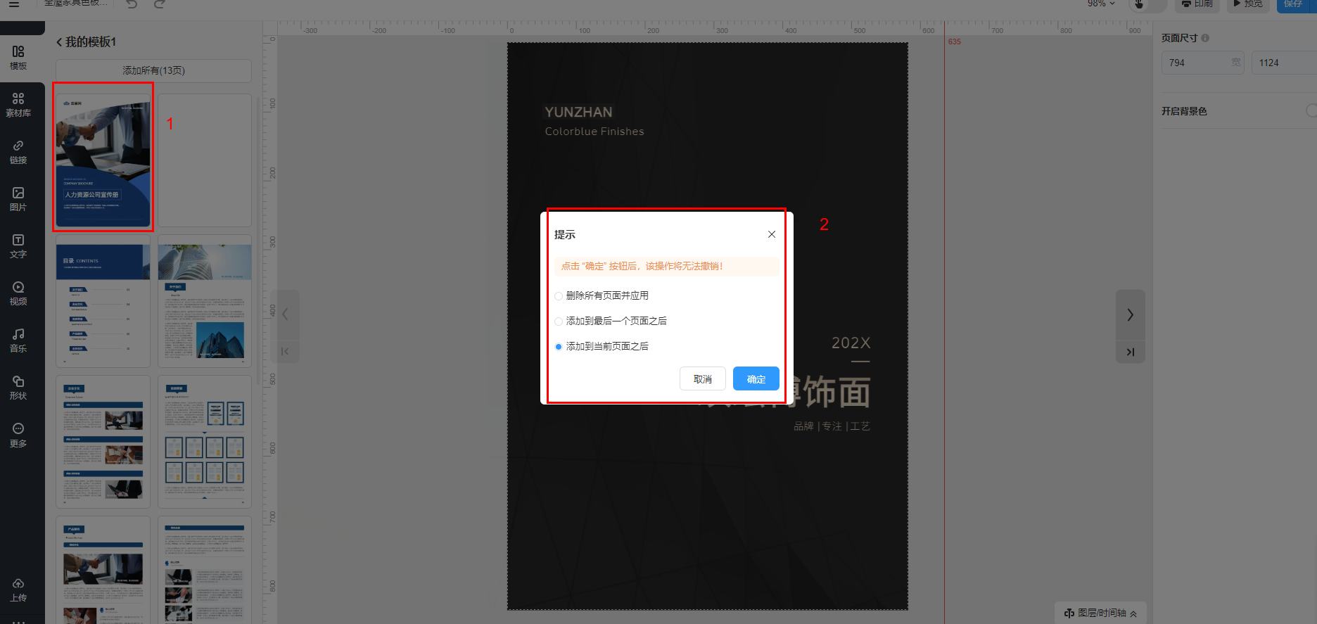 注意:1.应用模板的操作无法撤销,要确定无误后再操作。