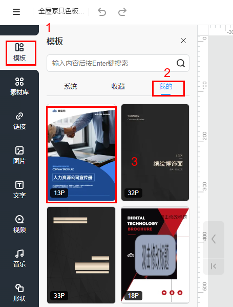 (2)点击【模板】,【我的】,找到你要应用的模板
