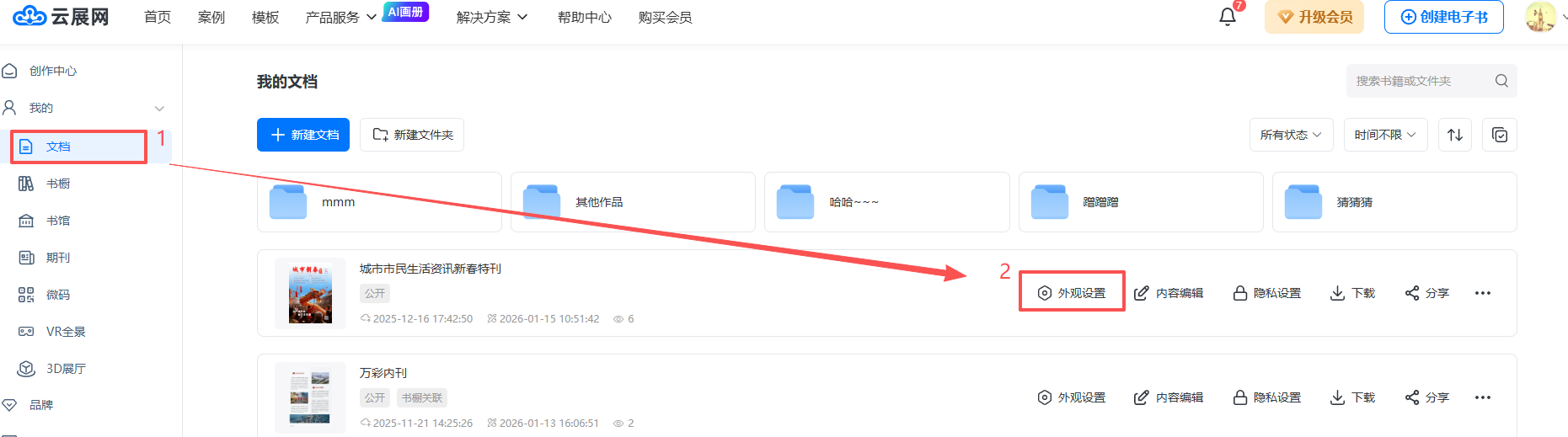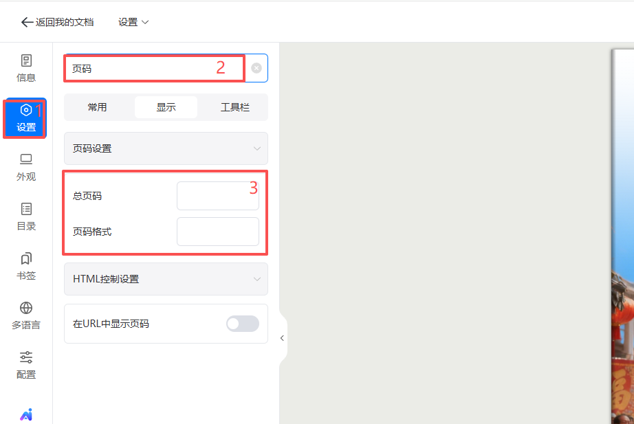 在【文档】页面,选择你要添加工具栏页码的电子书,打开【外观设置】界面。