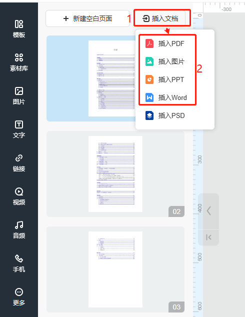 a)点击【插入文档】,根据需要,插入PDF/图片/PPT/Word文档。