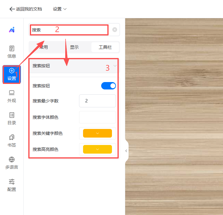 点击【文档】,然后点击对应电子书的【外观设置】,进入编辑器界面。