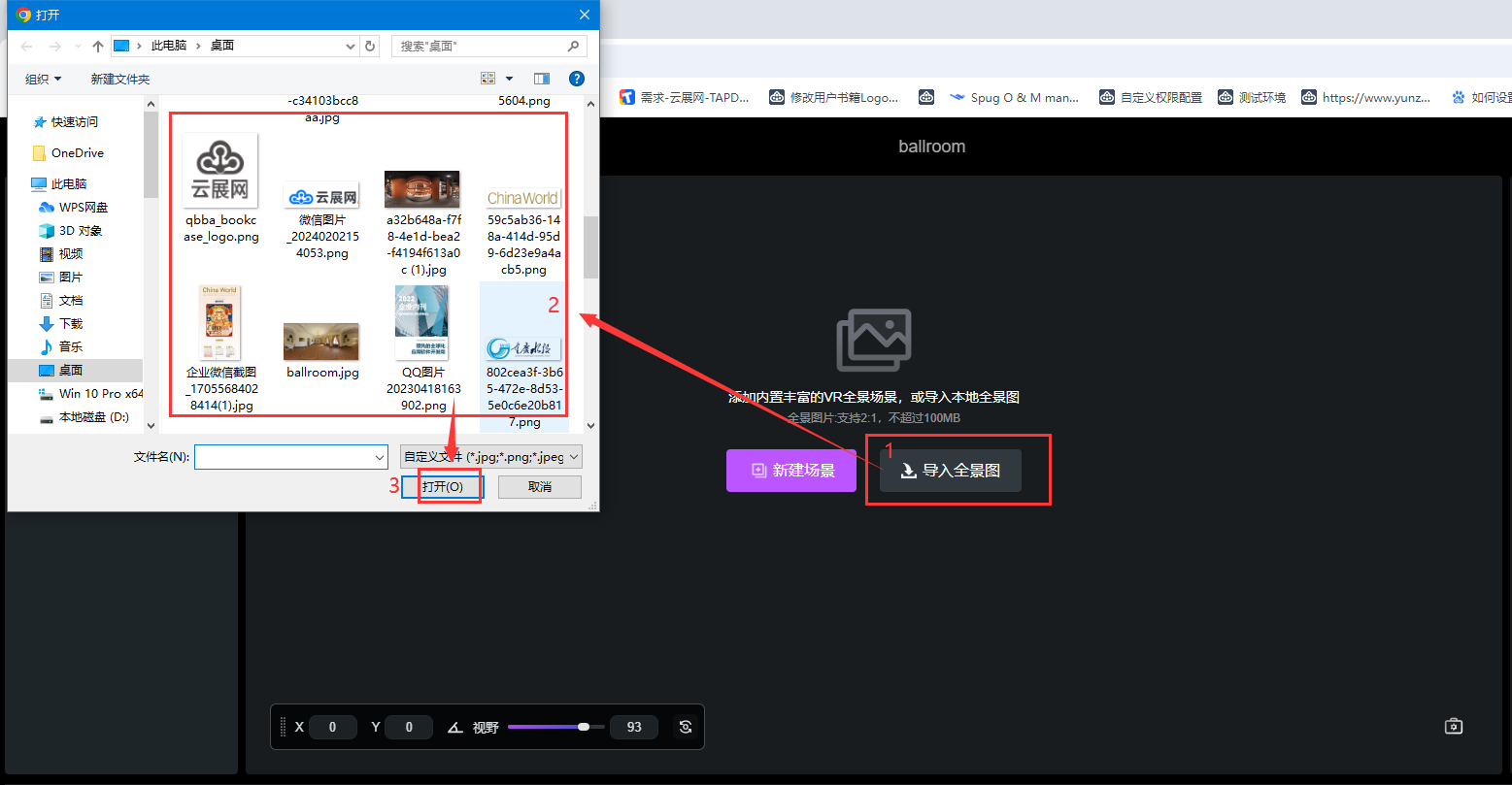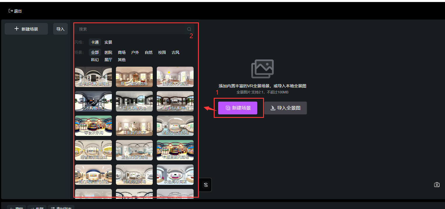点击【导入全景图】,上传自己本地的全景图转换成在线的全景空间