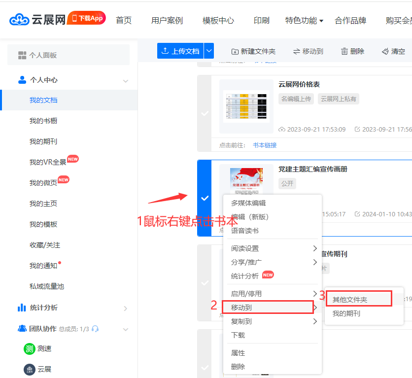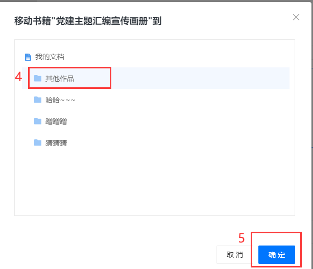 鼠标右键点击书本–选择【移动到】—【其他文件】–选中对应的文件夹