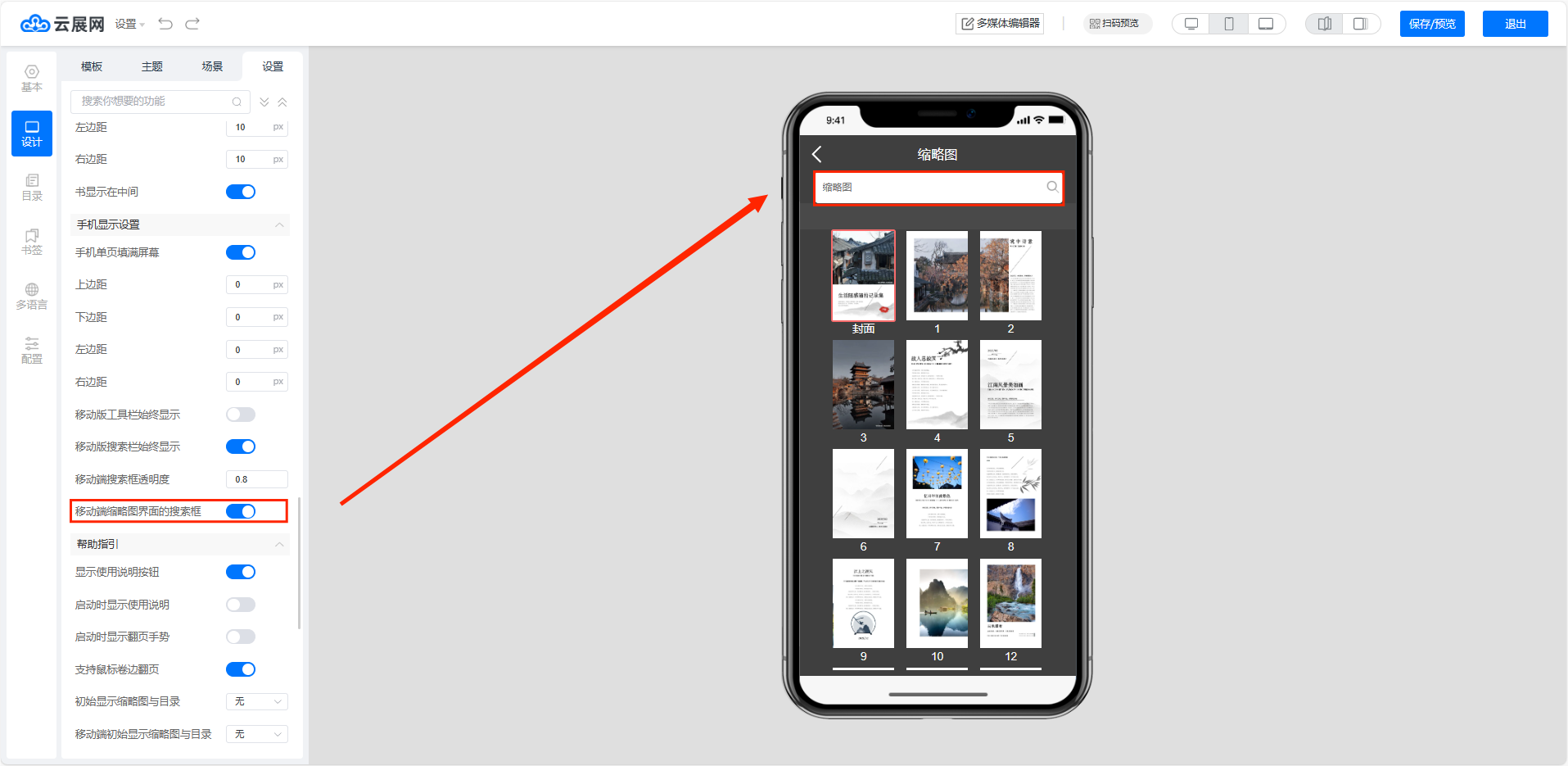 - 移动端缩略图界面的搜索框:显示移动端缩略图界面的搜索框