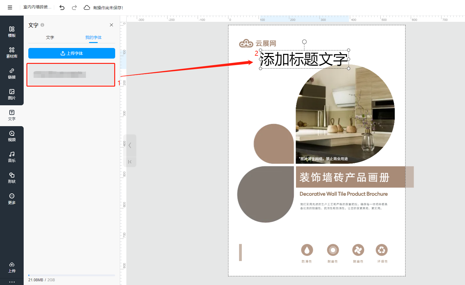 上传好字体后,点击一下字体,即可在页面上编辑文字。
