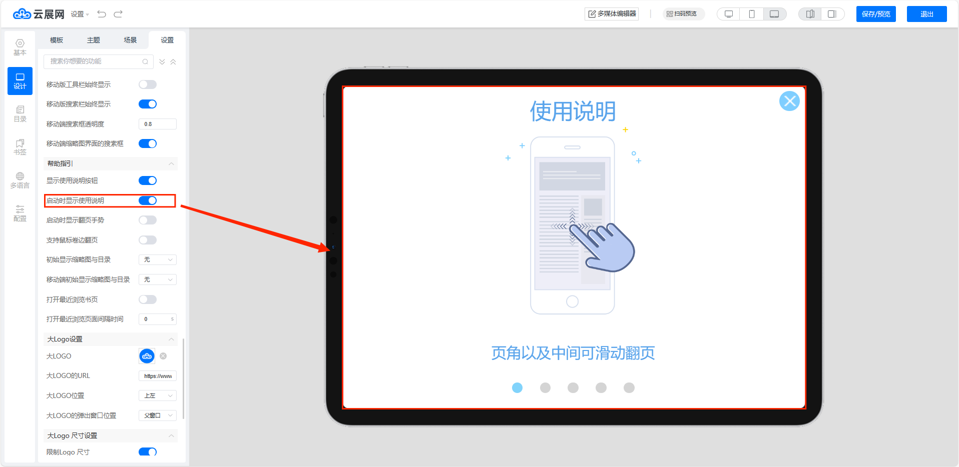 如果你想在读者点进电子书阅读时,可显示操作说明去引导读者操作阅读,或者是显示目录、缩略图等指引,可通过帮助指引设置来设置。