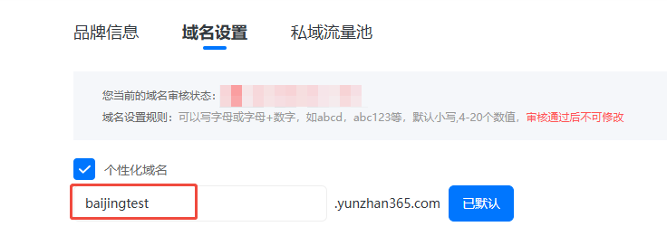 例如我把个性化域名设置为baijingtest: