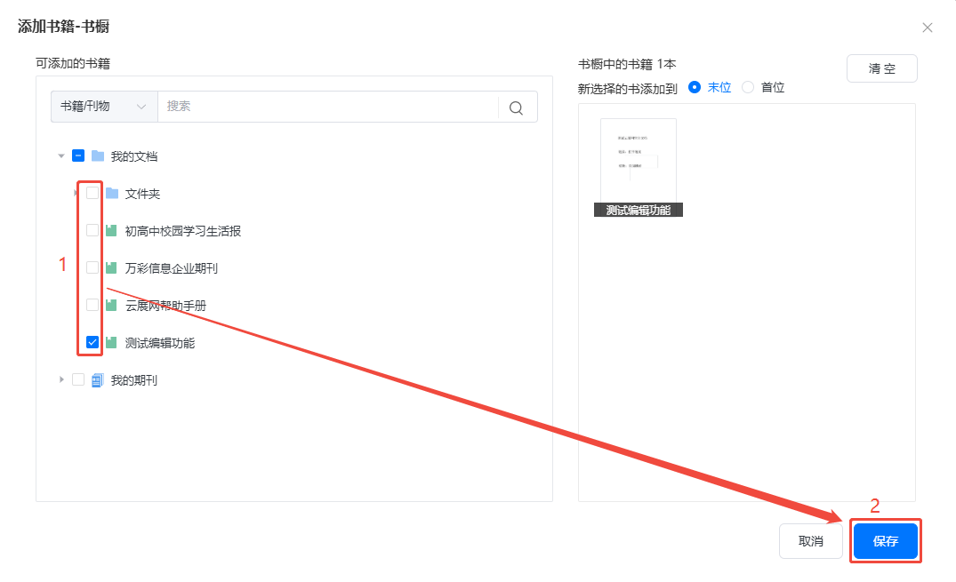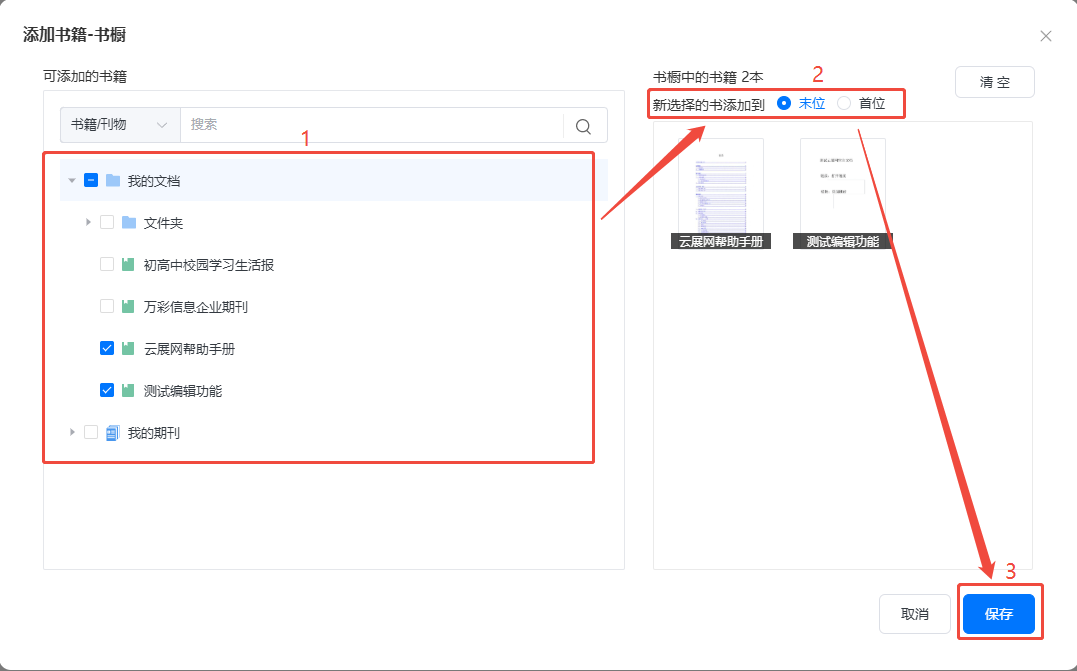 b)点击【添加书籍】,勾选需要添加的书籍,点击保存即可。