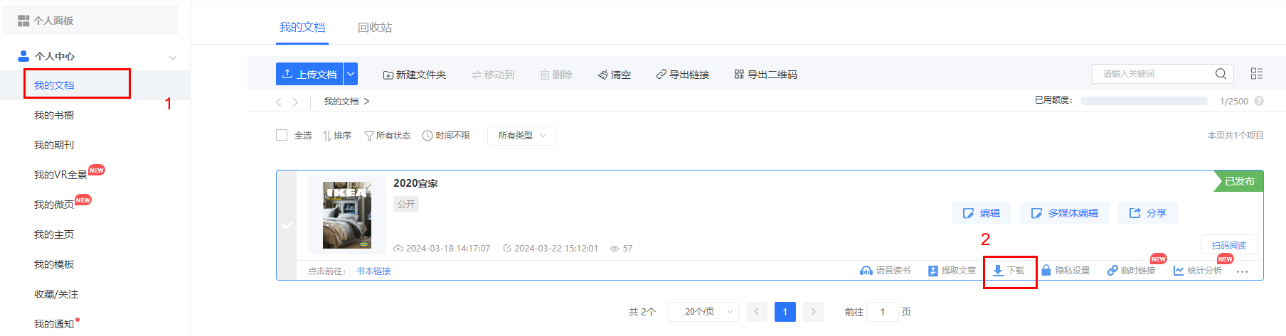 2 打开书橱链接,点击下载图标进行下载