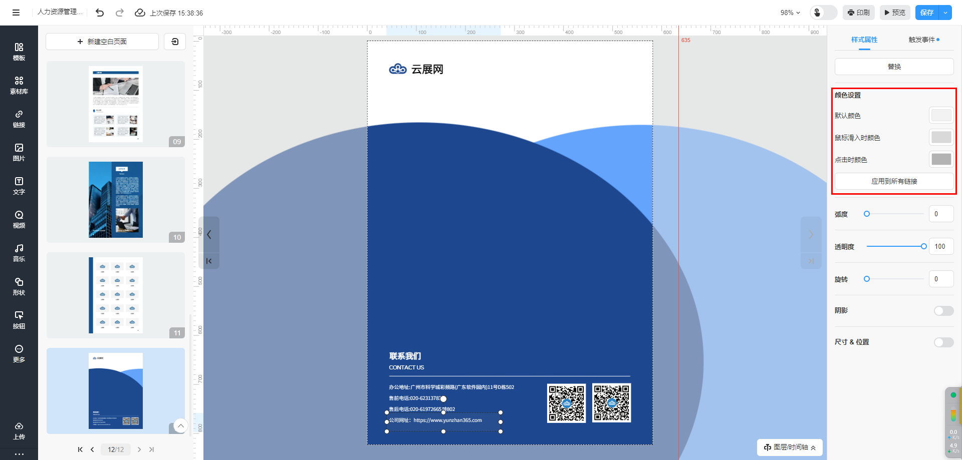 (3)如果需要设置链接框样式 也可以在设置面板中根据自己需要调节。