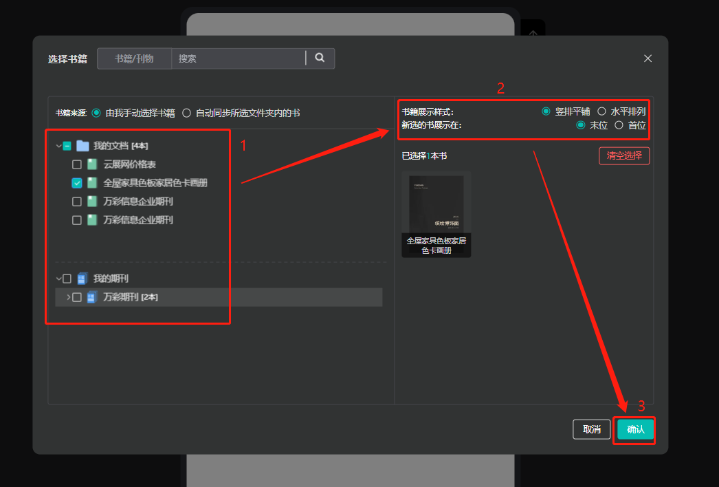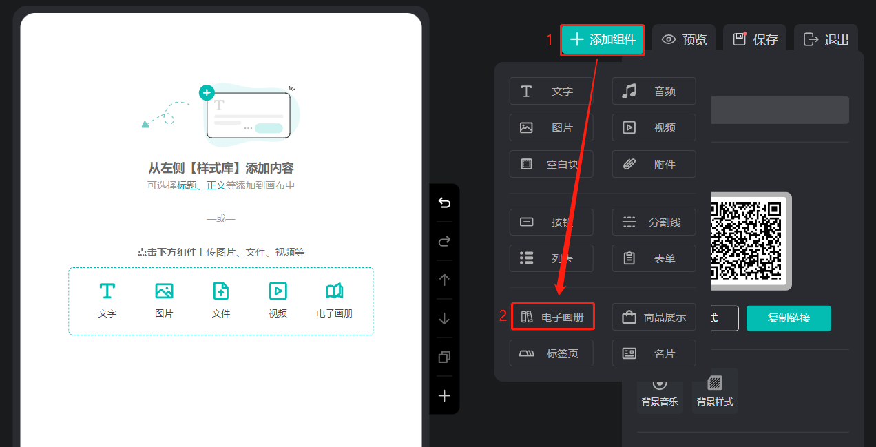 如何在微码上添加电子画册? 一、功能介绍 在微码上可以添加自己在云展网上制作的电子画册,并且点击就可以观看,效果如下: 二、操作步骤 1、打开微码的编辑器 点击【我的微码】,点击需要操作的微码的【编辑】。 2、添加电子画册 点击【添加组件】,选择【电子画册】。 3、选择要添加的电子画册 左边勾选要添加的电子画册,右上角选择【展示样式】和【展示位置】,最后点击右下角【确认】。 4、保存 点击右上角【保存】。