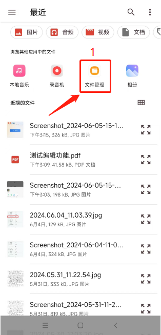 打开app点击【上传文件】,即可看到最近保存在的文件。